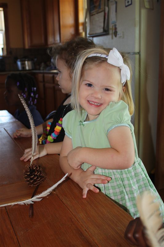 This week in Home Ec. class Grandma guided the girls into hosting a Fall party for their friends the Elliott family. We made a fun Fall Turkey from pine cones, played pin the stem on the pumpkin and drop the close pin in the cup. We ate fall cupcakes and candy. Lastly we just enjoyed some time hanging out in the back yard... We are so blessed to have the friends!!